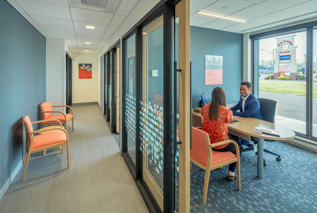 The original bank vault was retained and remains in use, one of several ways the project combined thoughtful updates with efficient reuse of existing features. The result is a clean, functional, and welcoming environment that supports both staff needs and customer experience..