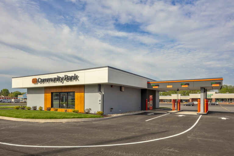 VIP Structures served as the General Contractor for Community Bank’s new branch at 7379 Oswego Road in Liverpool, NY. The project involved the full interior and exterior renovation of a 2,200 square foot former bank, transforming the space into a bright, modern branch while working entirely within the building’s existing footprint.