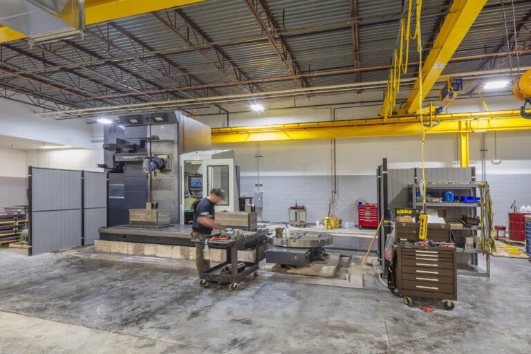By implementing strategic renovations, integrated engineering, and tailored design-build solutions, VIP transformed an underutilized commercial property into an operationally efficient manufacturing hub. Approximately 50,000 SF is dedicated to manufacturing space, designed to improve workflow, enhance material staging, and accommodate large-scale equipment. Structural enhancements and specialized flooring formed the foundation for the shop’s operations. One of the most critical upgrades was replacing half of the existing floor with 8-inch reinforced concrete—engineered to support CNC equipment while ensuring long-term stability. VIP’s in-house MEP engineering team played a pivotal role in bringing the space up to industrial-grade standards. The project included: a new compressed air system, process coolant distribution for CNC operations, and upgraded electrical service to power high-load equipment across the production floor. These systems were tailored to meet the demands of precision manufacturing and support future scalability.