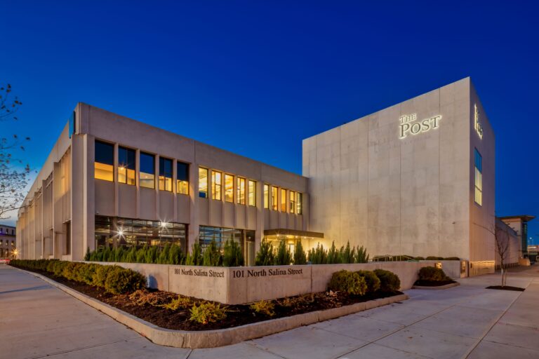 Since acquiring the Post Standard Building in 2017, VIP’s team of architects, engineers, builders, and developers has transformed the 216,000-square-foot building into high-performance, sustainable commercial office space. On the interior, 70,000 square feet of Class A office space was built to house tenants, including VIP Structures and ChaseDesign, with newly renovated shared amenities such as a lobby, vending, conference room, and fitness center. Exterior renovations include building facade improvements, installing energy-efficient operable windows, roof repairs, and overhauling the streetscape. Additional projects are underway and expected to be completed in 2023, welcoming new tenants, including NBT Bank. In addition, Phase 2 at the Post will see the development of approximately 120,000 SF of light industrial space left vacant by the Post Standard printing operations.