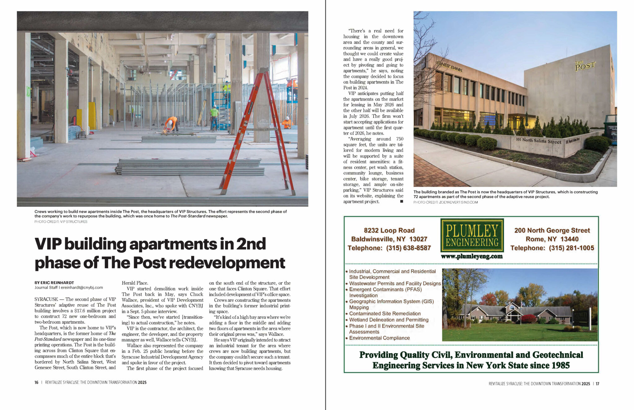 VIP’s adaptive reuse of Syracuse’s former Post Standard building continues to gain regional attention, with the Central New York Business Journal’s (CNYBJ) Revitalize Syracuse special publication highlighting VIP’s progress on the second phase of redevelopment.